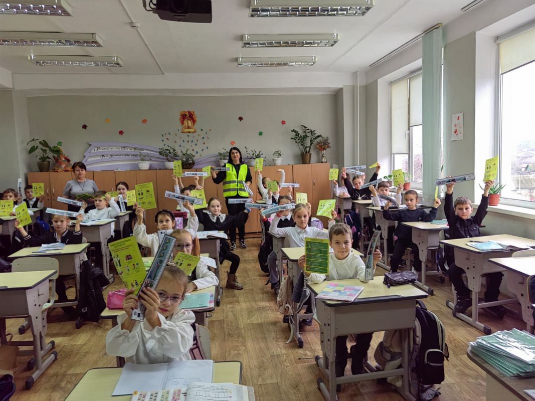 Practical activities were also carried out by primary school students from Mihail Sadoveanu Theoretical High School in Hincesti town, who became acquainted with the main road signs and participated in interactive exercises on how to cross a street safely and the responsible behavior of pedestrians. The activity had the role of consolidating theoretical knowledge and forming safe practical skills from an early age.